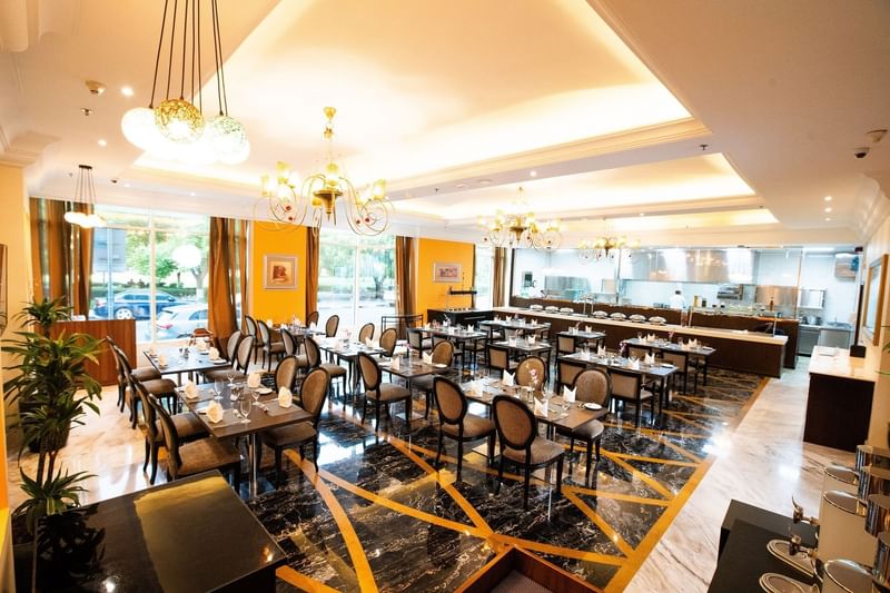 New Season is the hotel's All-Day dining restaurant in Dubai. Located on the ground floor, it serves a choice of international dishes from Asian to Arabic, buffet style, with separate sections for appetizers and salads, main courses and grills, as well as desserts.